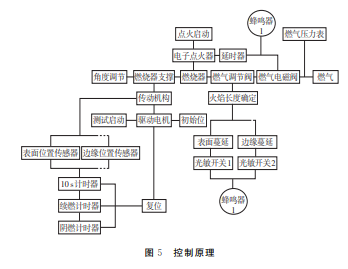 7、控制原理及安全保护装置控制原理如图5所示,为了安全,仪器设置有燃气泄漏报警与燃气源自动切断保护装置。