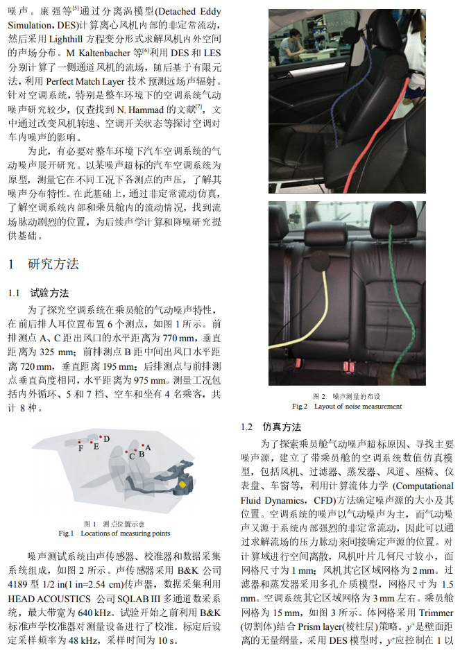 随着物质生活水平的提高,汽车空调在满足制冷和取暖需求的同时,产生的气动噪声也逐渐受到关注。汽车空调气动噪声主要来源于风机和风道,既包括风机周期性旋转产生的离散噪声和宽带噪声,也包括气流与风道相互作用产生的噪声。由于流场复杂性,尚未明确流动对声源的影响:同时复杂的声场导致其噪声传播机理有待进一步研究。随着对乘员舱舒适性的要求越来越高,很多汽车空调系统出现噪声超标问题,因此,有必要通过试验和仿真手段进行深入研究。