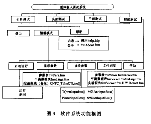 为 实 现 上 述 闭 环 控 制 过 程 , 要 求 对 假 人 皮 肤 表面 温 度 进 行实时采集 和 热 流 调 控 。 本 软件 主 体采用V B 5 . 0 高 级 程 序 设 计 语 言 , 同 时 引 入 V C 语 言 编 制输 入 、 输 出 接 口 文 件 并 通 过 软 件 接 口 实 现 V B 与 v c程序 设 计 语 言的 连 接; 运 用 A c c e s s 数 据 库 对 采 集 数据进 行 管 理 ;用 标 签 控 件 与 A c c e s s 数 据库 进 行 数据绑定 , 实 现 参数 的 实 时 显 示 。 软 件 系 统 实 现 的 主 要功 能 如 图 3 所 示 。