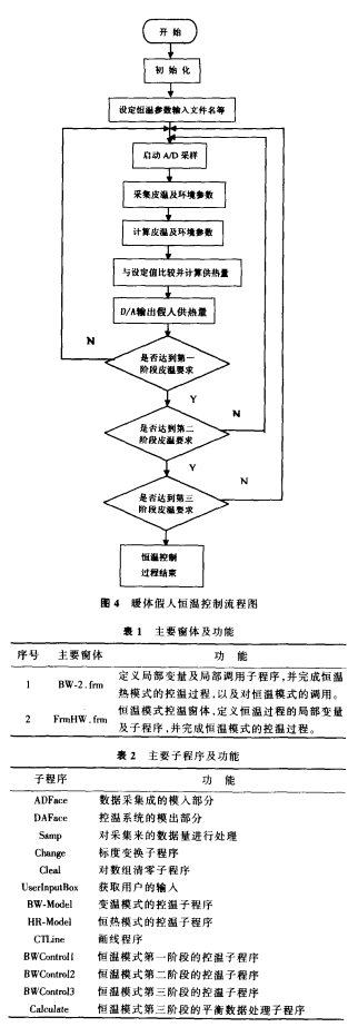 暖 体 假 人 恒 温 控 制 测 试 软 件 要 实 现 数 据 的实 时采集 、 热 流 调 控 、 实 验 过 程 参 数 的 实 时 修 改 、 测 试 指标 的 计算 、 显 示 、 打印 以 及 不 同 试 验 制 式 的 选 择 等 多种 功 能 , 本 系 统 软件设 计 了 定 时 器 、 标 签 、 图 片 框 、 滚动条 、 按 钮 、 对 话 框 等 常 用 基 本 控 件 对 象 , 编 制 了 应用 程 序代 码 , 实 现 了 数据 的 分 时 处 理 与 共 享; 并 设 计制 作 了 不 同 的 窗 体 , 创 造 出 友 好 的 用 户 界 面 , 使 整 个软 件 系 统 具 有 良好 的 可 视 性 及 可 靠 性 。