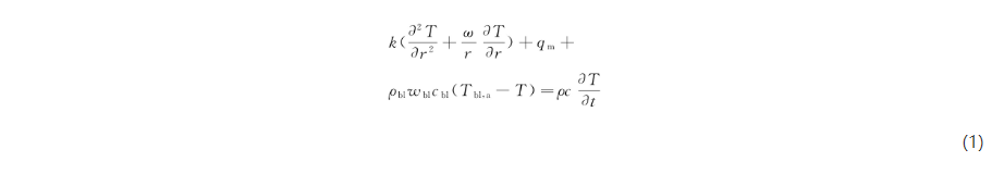 式中:k为导热系数;T为节点温度;r为节点半径;ω为几何因子;ρbl为血液密度;wbl为血液扩散率;cbl为血液热容量;Tbl,a为动脉血液温度;ρ为节点密度;c为节点热容量;t为时间。