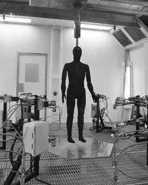 燃烧假人测试系统用于测试防护服装的整体热防护性能。完整的燃烧假人系统,由燃烧室,燃烧假人以及供气控制系统等构成。